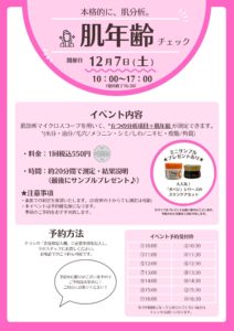 内容:肌年齢のチェックと結果説明・サンプルプレゼント