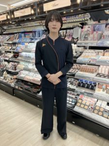 「目配り・気配り・思いやり」あふれるドラッグストアを目指す、お客様の美と健康をサポートするビューティスタッフであることから、「親しみを感じる、ハッピーの空間を彩る」をイメージに清潔感と専門性を重視し、さらに店舗で活動しやすいように機能性も考慮しました。