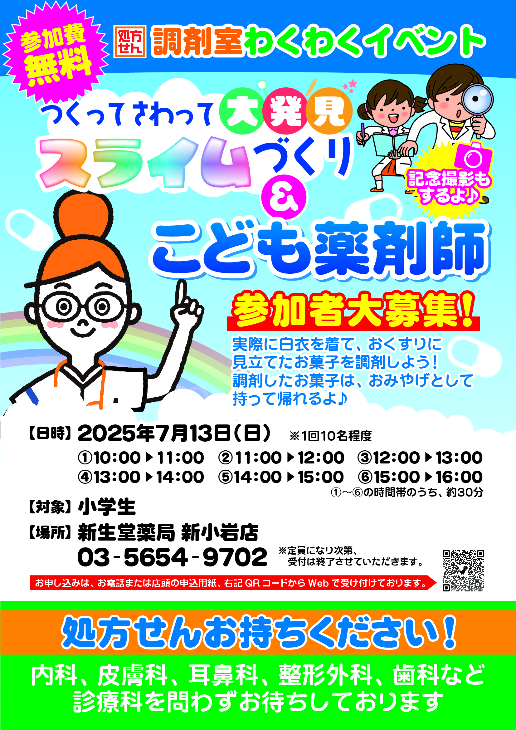 7/13(日) 新生堂薬局 新小岩店にて【調剤室わくわくイベント こども薬剤師】参加者大募集!
