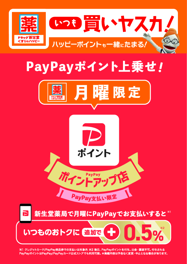 「PayPayポイント」がお得に貯まる「PayPayポイントアップ店」に、 新生堂薬局が追加!