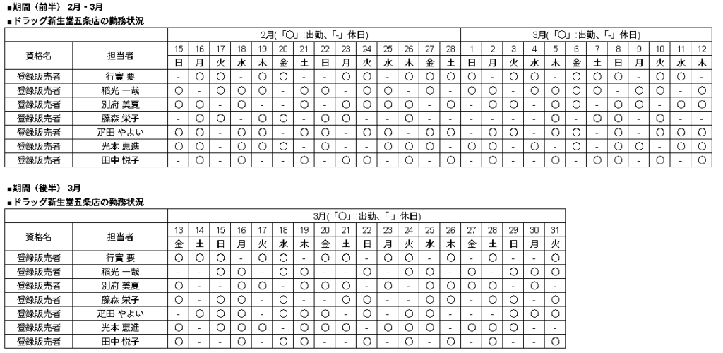 | 当店舗の資格者の勤務状況 |