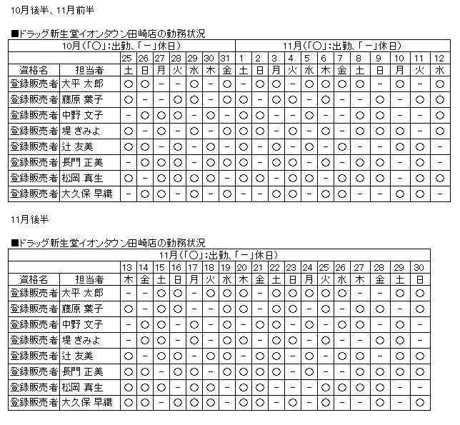 | 当該店舗に勤務する 資格者の氏名、担当業務等 |