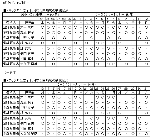 当該店舗に勤務する 資格者の氏名、担当業務等 |