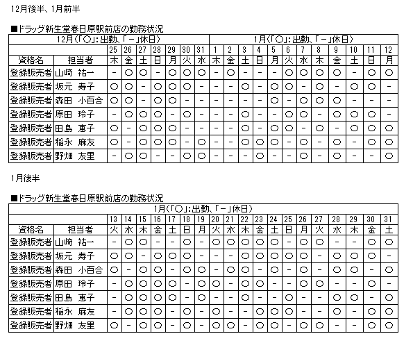 | 通常相談時及び緊急時の連絡先 | [当店への連絡先] ドラッグ新生堂春日原駅前店 連絡先:092-587-1130 |