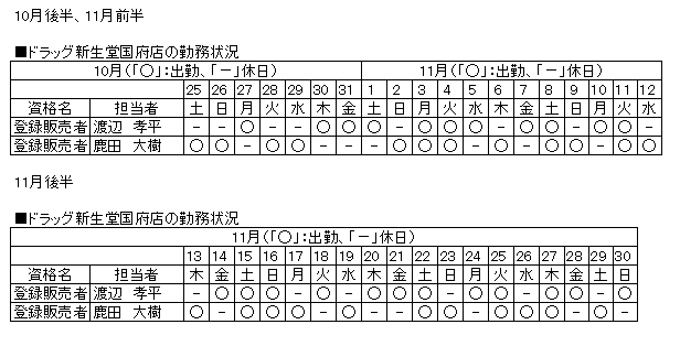 ●ドラッグ新生堂 国府店 ・実店舗の営業時間: 月~日曜日、不定休 午前9時00分~午後8時00分 ・アプリ販売、インターネット販売の営業時間: 月~日曜日、不定休 午前11時00分~午後7時00分 |