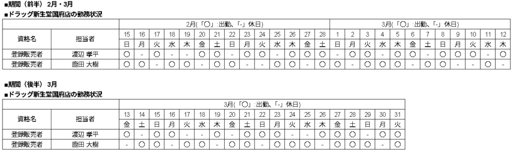 | 当店舗の資格者の勤務状況 |
