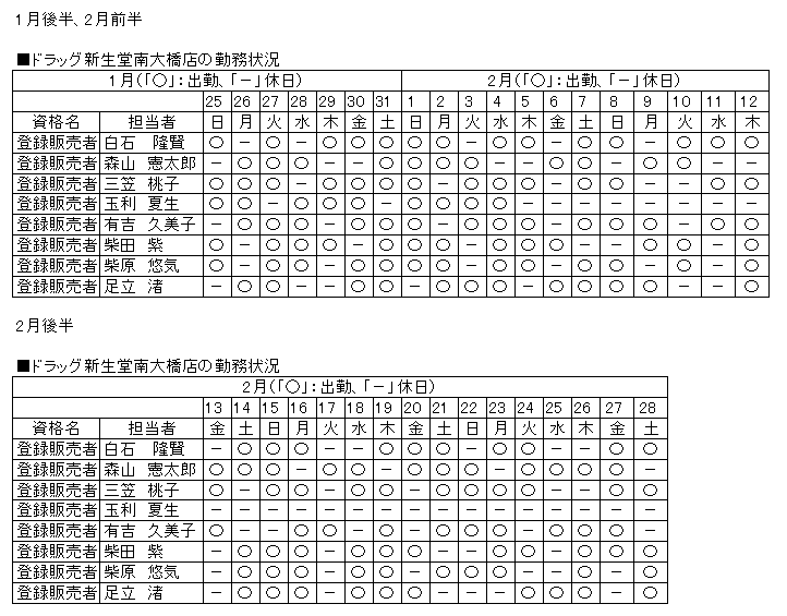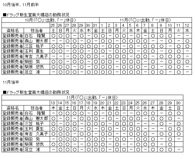 | 当該店舗に勤務する 資格者の氏名、担当業務等 |