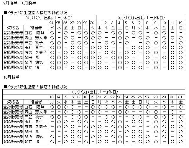| 通常相談時及び緊急時の連絡先 | [当店への連絡先] ドラッグ新生堂南大橋店 連絡先:092-554-5660 |