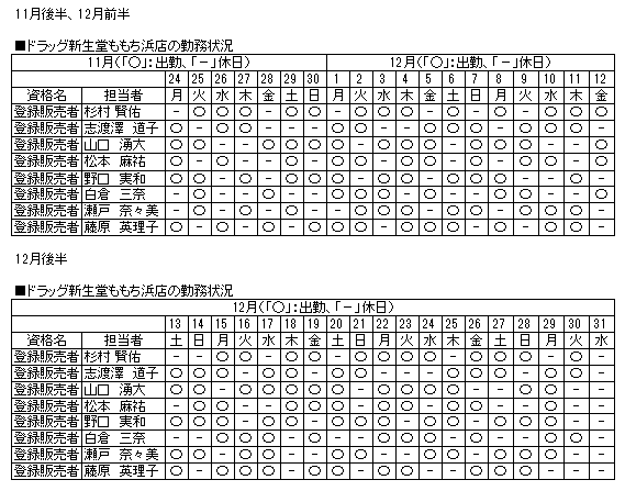 ドラッグ新生堂ももち浜店(アプリ販売、インターネット販売) ・営業時間 午前9時00分~ 午後7時00分 ・定休日 不定休 ・連絡先 092-833-2131 |
