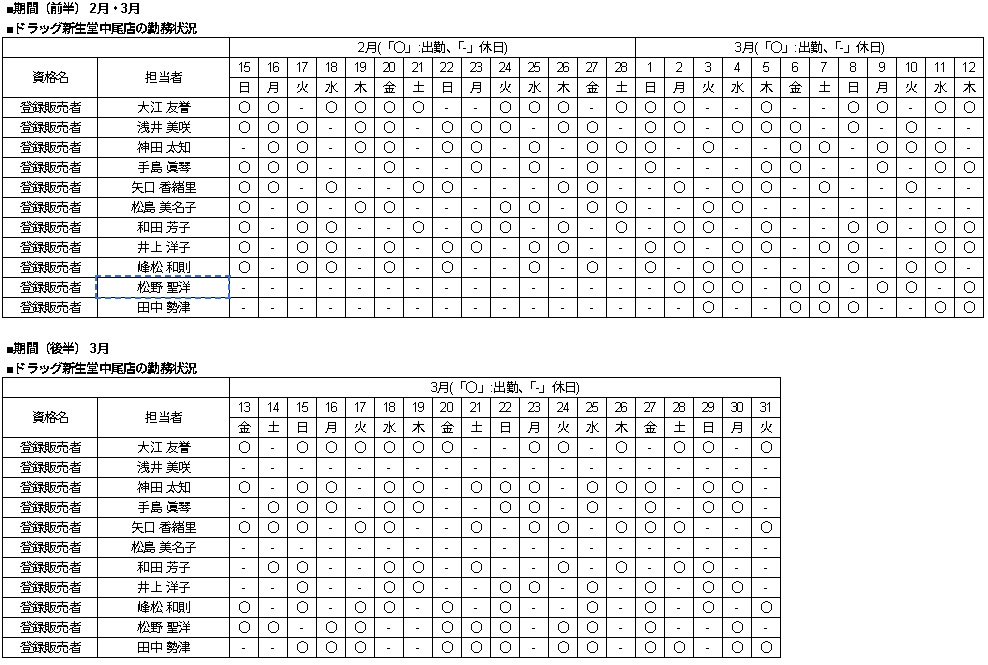 | 当店舗の資格者の勤務状況 |