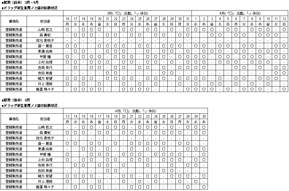 | 当店舗の資格者の勤務状況 |