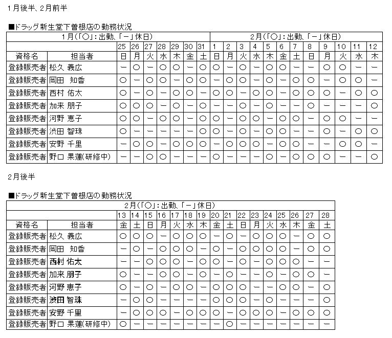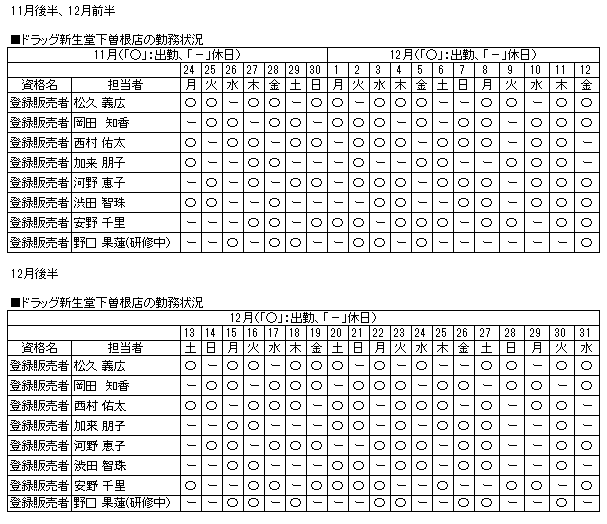 | 当店舗の資格者の勤務状況 |
