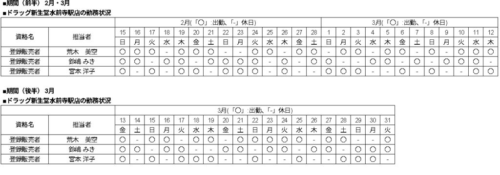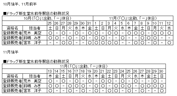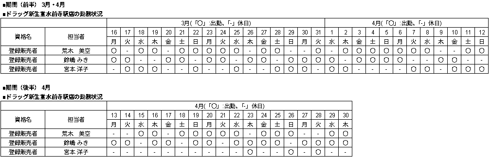 | 当店舗の資格者の勤務状況 |