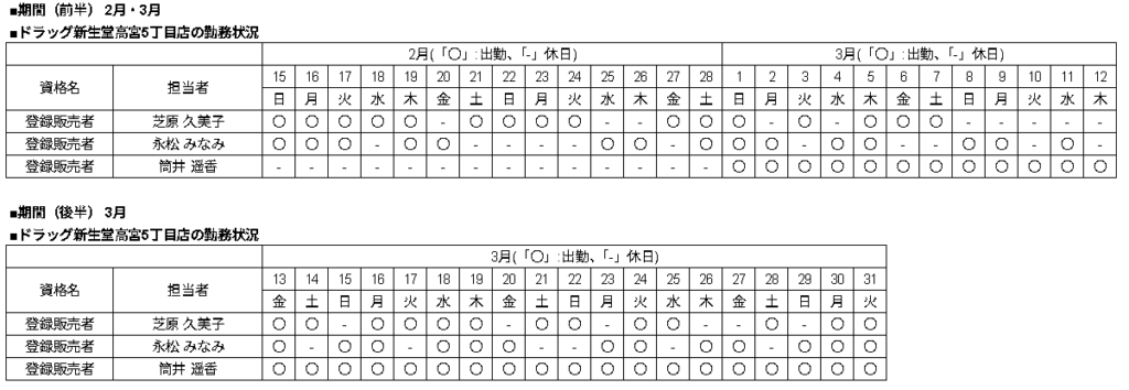 | 当該店舗に勤務する 資格者の氏名、担当業務等 |