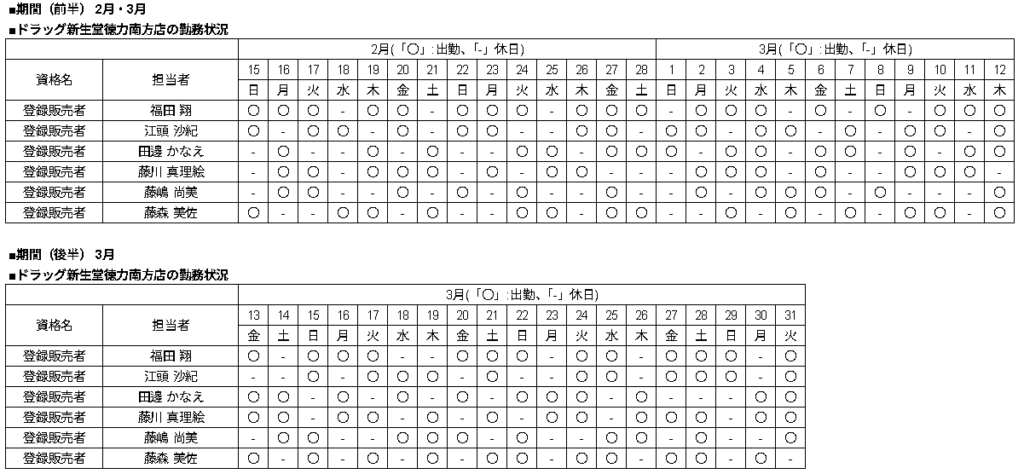 | 当店舗の資格者の勤務状況 |