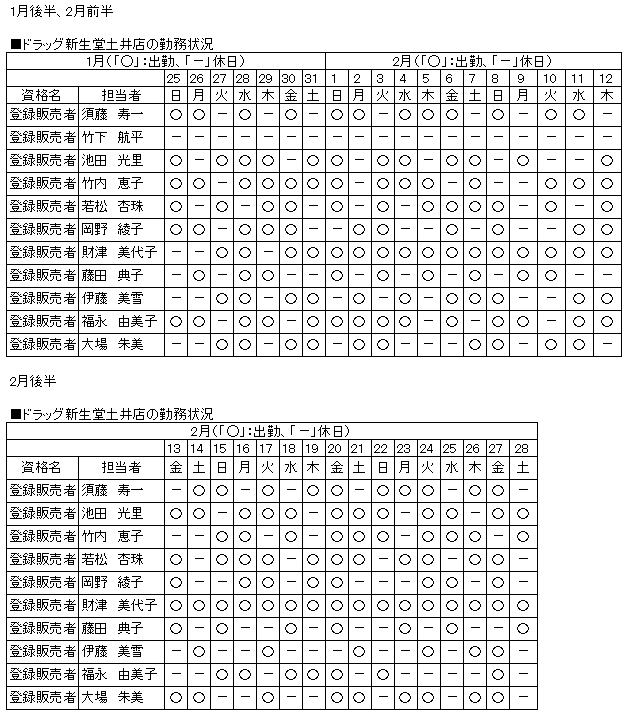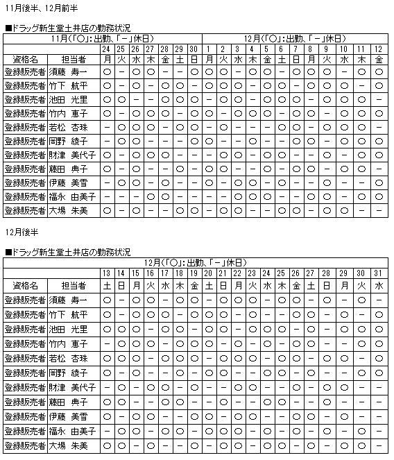 | 当店舗の資格者の勤務状況 |