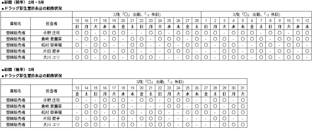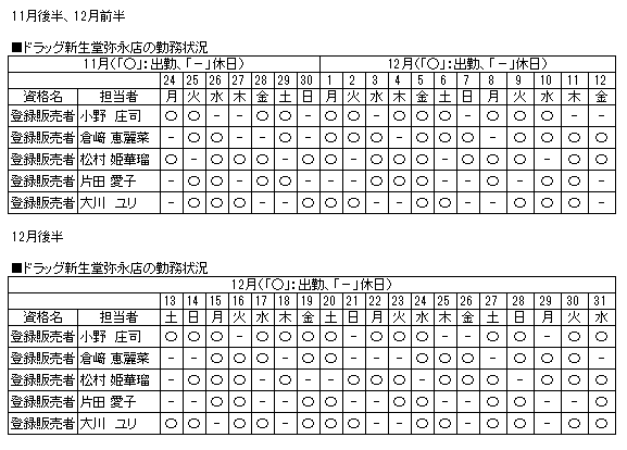 | 当店舗の資格者の勤務状況 |
