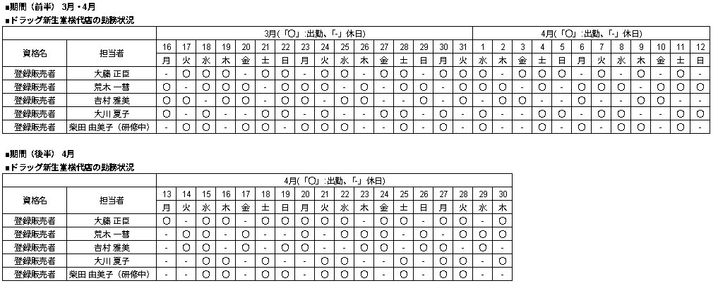 | 当店舗の資格者の勤務状況 |